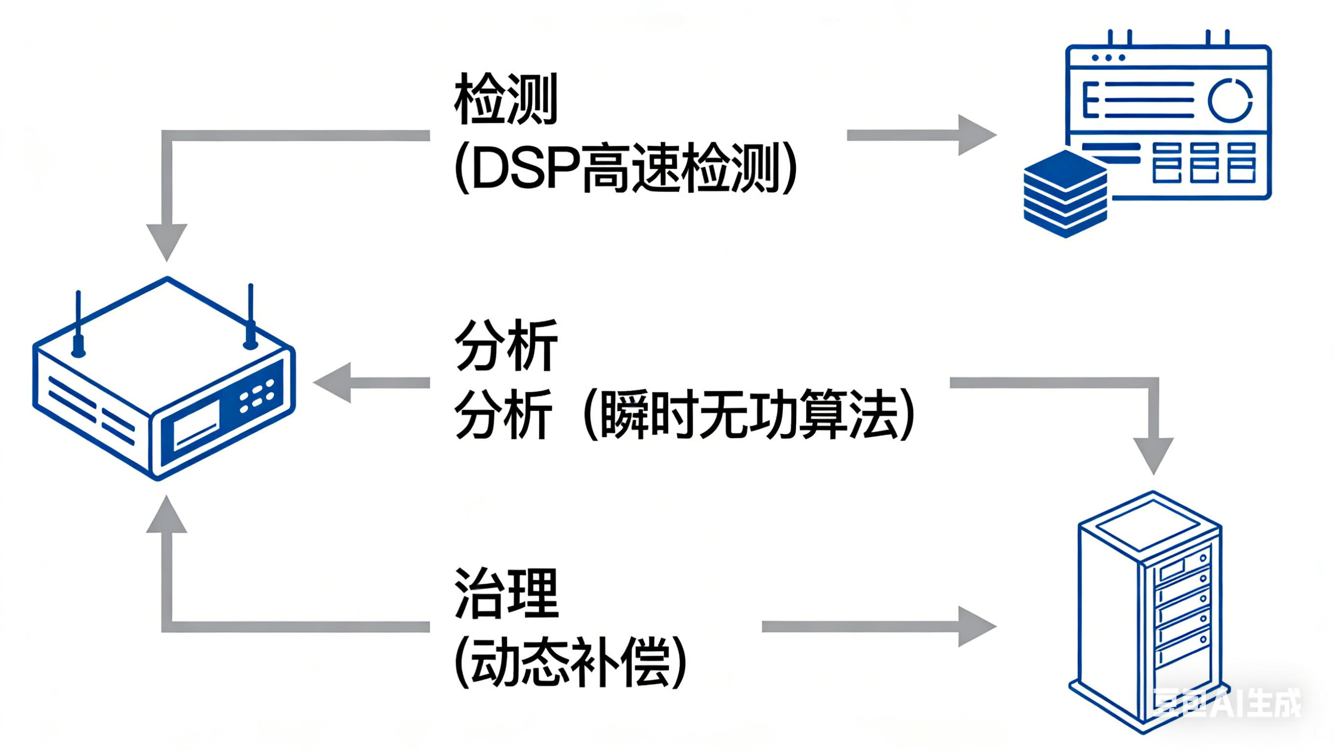 系统采用模块化硬件架构与智能控制算法,构建“感知-治理-防护-溯源”全链路管控体系,精准匹配光刻机、等离子刻蚀机、化学机械抛光系统等精密设备的用电需求,完全契合SEMI F47认证及《广州市电能质量管理实施办法》中“主动防控”的治理要求。为实现高效治理,该系统采用多项关键技术:首先是实时监测技术,通过高精度传感器采集电能参数,确保数据的准确性和时效性;其次是智能分析技术,利用算法模型识别问题类型和根源,为治理提供决策依据;电力电子技术是治理单元的核心,例如采用动态电压恢复器(DVR)来补偿电压暂降,或有源滤波器(APF)来抑制谐波;通信技术则实现各单元之间的数据交换和远程控制,提升系统的响应速度和协调能力: