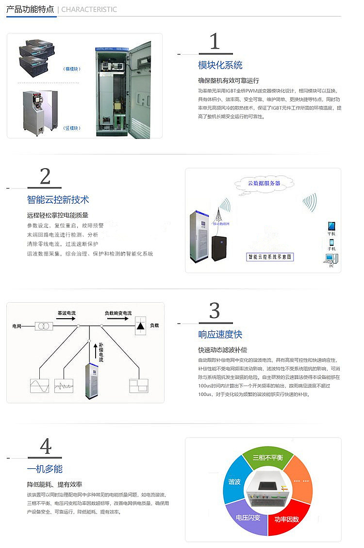 3.3.1 补偿范围:功率因数补偿范围从-1- 1可调,允许与无功补偿电容并联运行
